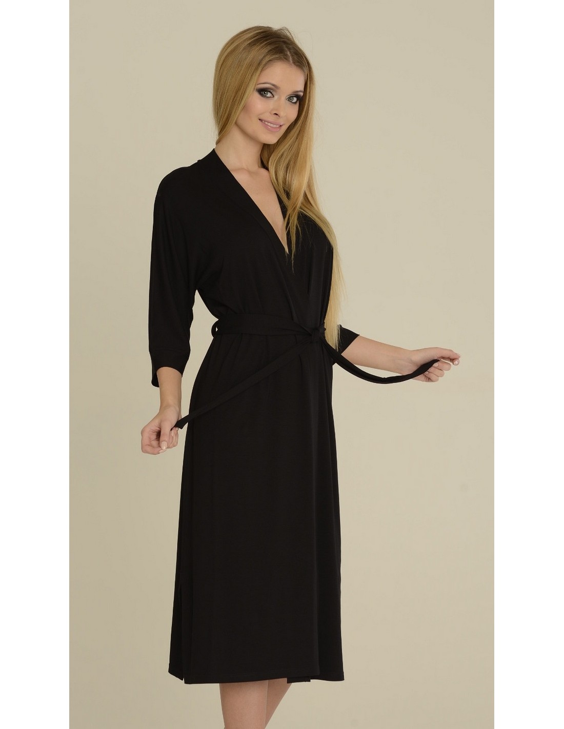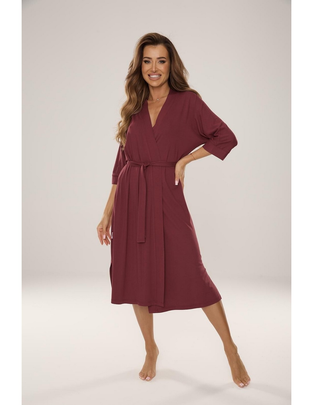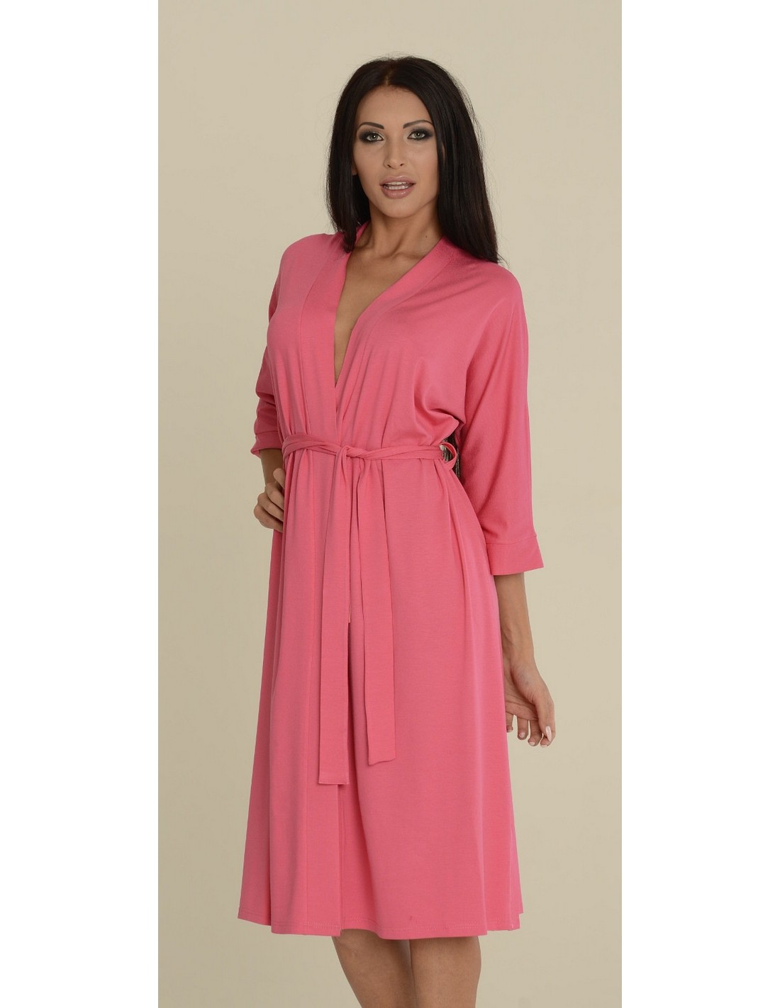 Long women's bathrobe made of high-quality viscose. This model is thin, has 3/4 length sleeves and is tied at the waist.